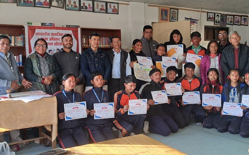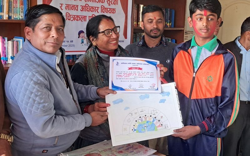 शान्तिका लागि साझा अभियान ( कोक्याप) को आयोजना र रत्नशोभा मा.वि.पोखरा २८ को व्यवस्थापनमा सम्पन्न भएको कार्यक्रममा जनज्योति मा.वि., कालिका ईङ्गलिस बोडिङ स्कुल र रत्नशोभा माविका प्रत्येक विद्यालयबाट ५ जना गरी जम्मा १५ जना विद्यार्थीहरुको चित्रकला प्रतियोगितामा सहभागिता रहेको थियो । सामाजिक सुरक्षा र मानव अधिकार विषयक चित्रकला प्रतियोगितामा कालिका इङ्गलिस बोडिङ स्कुलका रितेश भण्डारी प्रथम , जनज्योति माविका रिदम गुरुङ द्धितिय , जनज्योति माविकै सृष्टि बजगाई तृतीय र रत्नशोभा माविका स्मृति बुढाथोकी सान्त्वना भएका थिए । प्रतियोगिताको निर्णायकमा गैह्र सरकारी संस्था महासंघ कास्की शाखाका सचिव केशु भुजले र कलाकार रिक गुरुङ रहनु भएको थियो ।