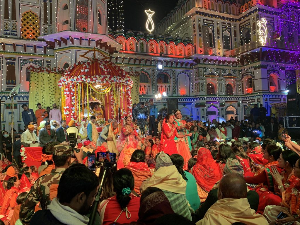 २२ मंसिर, जनकपुरधाम । सप्ताहव्यापी सीताराम विवाहपञ्चमीअन्तर्गत राम र जानकीको विवाह सम्पन्न भएको छ । शुक्रबार साँझदेखि जानकी मन्दिरमा मिथिलाको वैदिक परम्परा अनुसार राम र जानकीको विवाहको विधि रातभर चलेको थियो । त्यसअघि हिजो मुख्यदिन ऐतिहासिक बाह्रविघा रंगभूमि मैदानमा राम र जानकीको डोला फेर गरी स्वयम्बर भएको थियो । दुवै डोला जनकपुरको परिक्रमा गरी जानकी मन्दिर पुगेपछि विवाहको काज सुरु भएको थियो ।