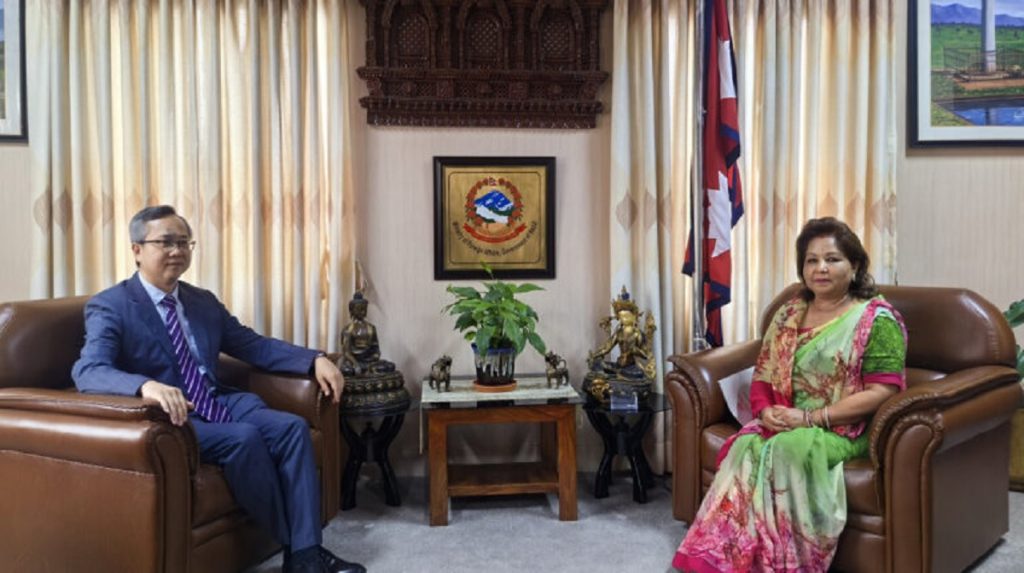 यही क्रममा नेपालका लागि चिनियाँ राजदूत छन सोङले परराष्ट्रमन्त्री डा. आरजु राणा देउवासँग सोमबार सिंहदरबारमा भेटवार्ता गरेका छन् ।